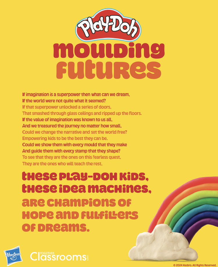 Each participating classroom received a Moulding Futures in the Classroom teacher guide, Play-Doh at Home parent booklets, classroom posters, and Play-Doh Fun Factory Starter Kits. The materials encouraged open-ended, sensory play and showed educators and families how Play-Doh supports key developmental domains including creativity, communication, and fine motor skills.